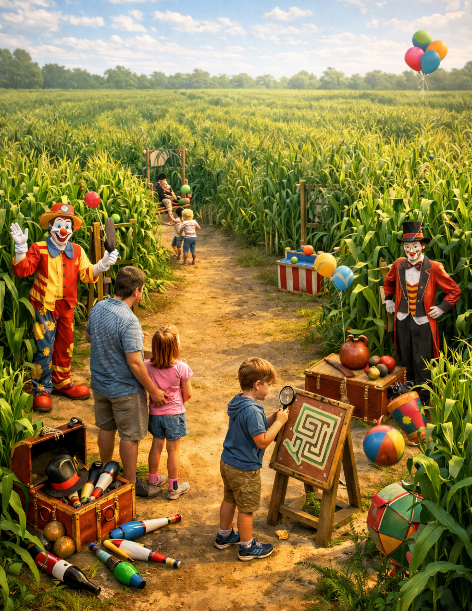 🌽 À l'intérieur de notre grand labyrinthe de maïs, petits et grands deviennent de vrais artistes de piste !